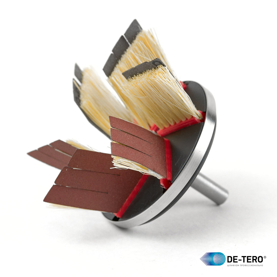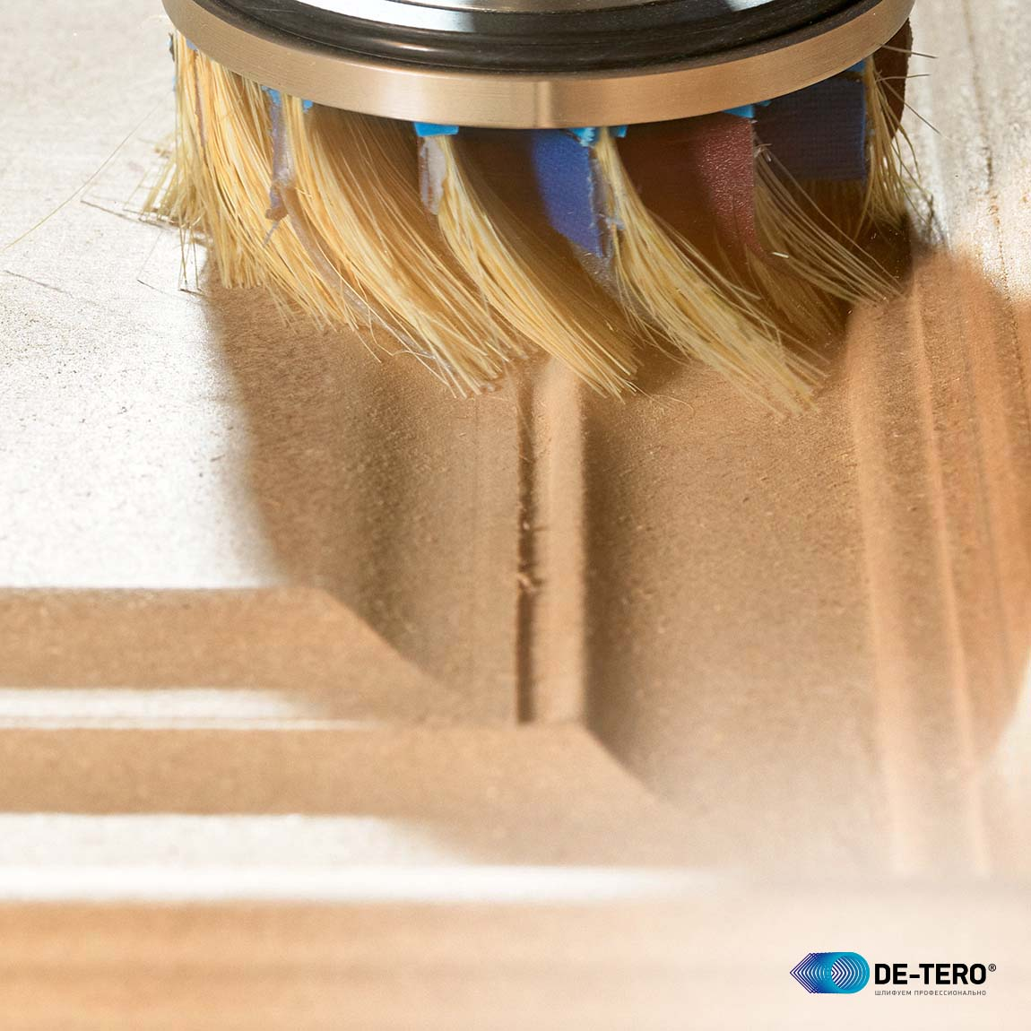 Система DE-TERO® T75H представляет собой торцевую насадку-щетку (диаметр втулки 75 мм) для шлифования фасадов из МДФ и 3D-фрезеровок (в том числе внутренних углов).